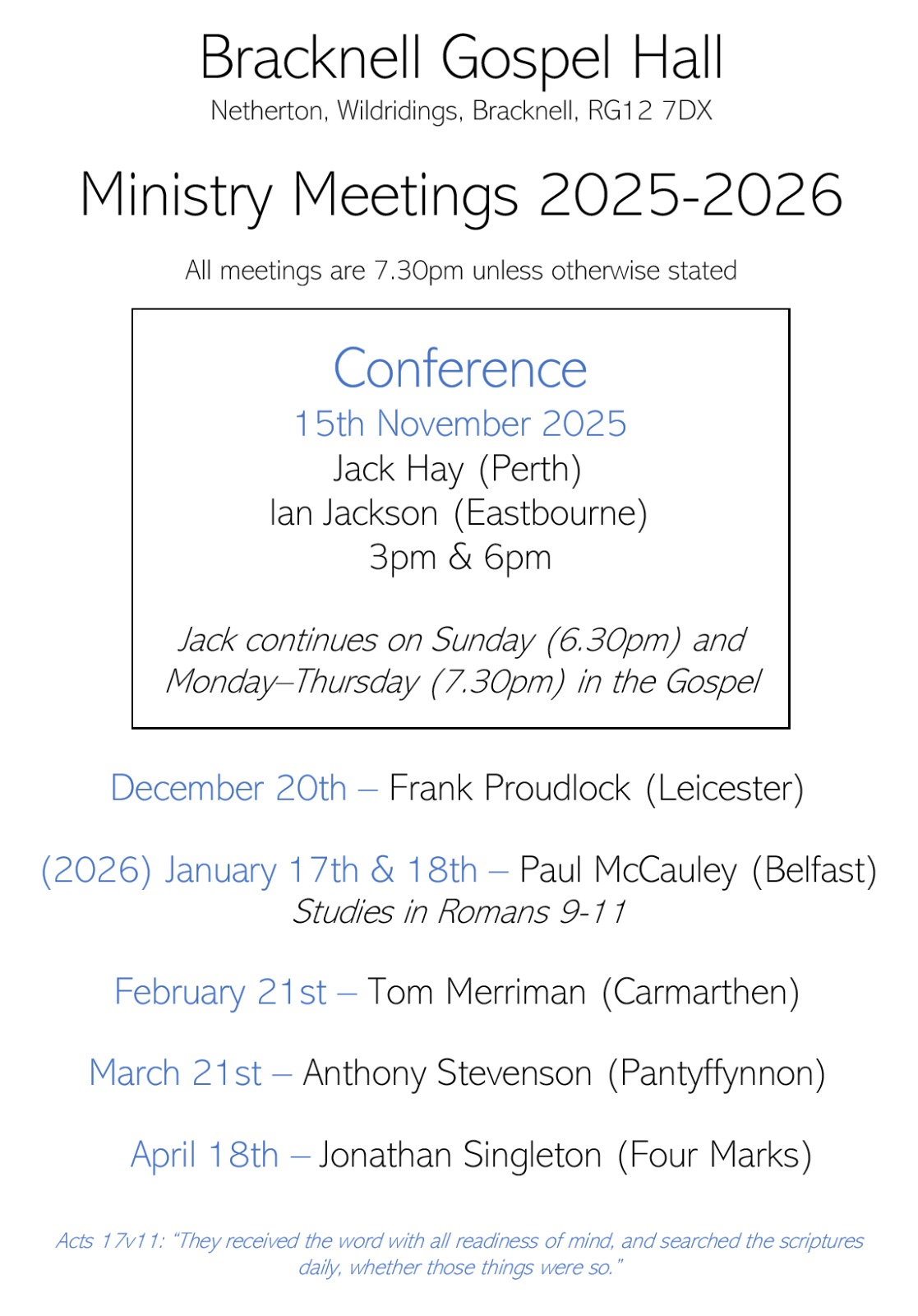 Thanks for visiting our website. We are a group of Christians who gather to the name of the Lord Jesus Christ at Bracknell Gospel Hall in Netherton, Wildridings Bracknell.